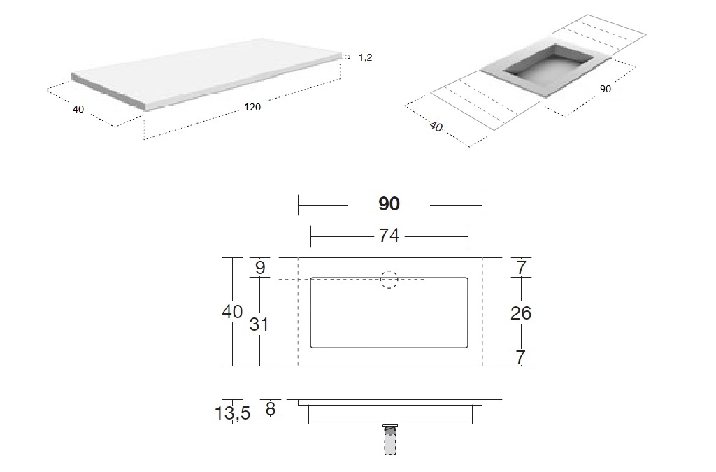 Cena dotyczy umywalki w rozmiarze 40x120 cm