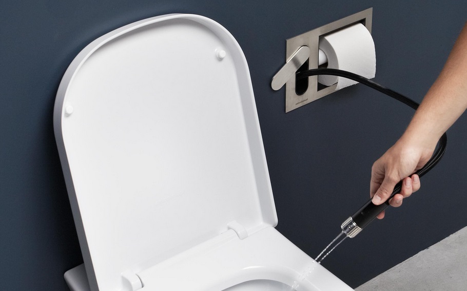 Moduł z wyciąganą słuchawką do mycia miski WC z papiernicą.