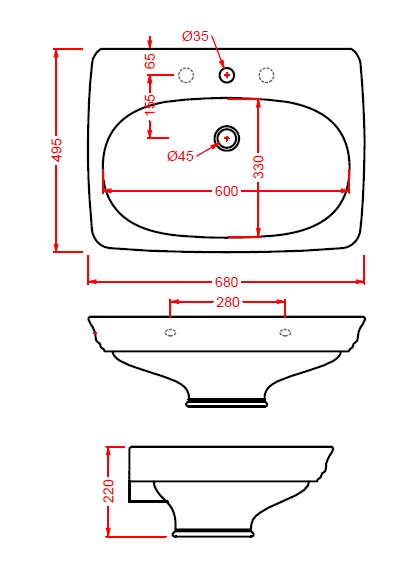 Artceram Civitas Umywalka ścienna 68x50 cm Biała CIL00101;00