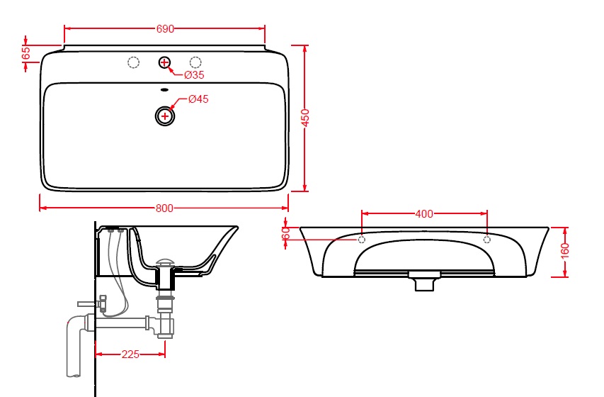 Artceram Cow Umywalka stawiana na blat/ścienna 80x45 cm Biała CWL00301;00
