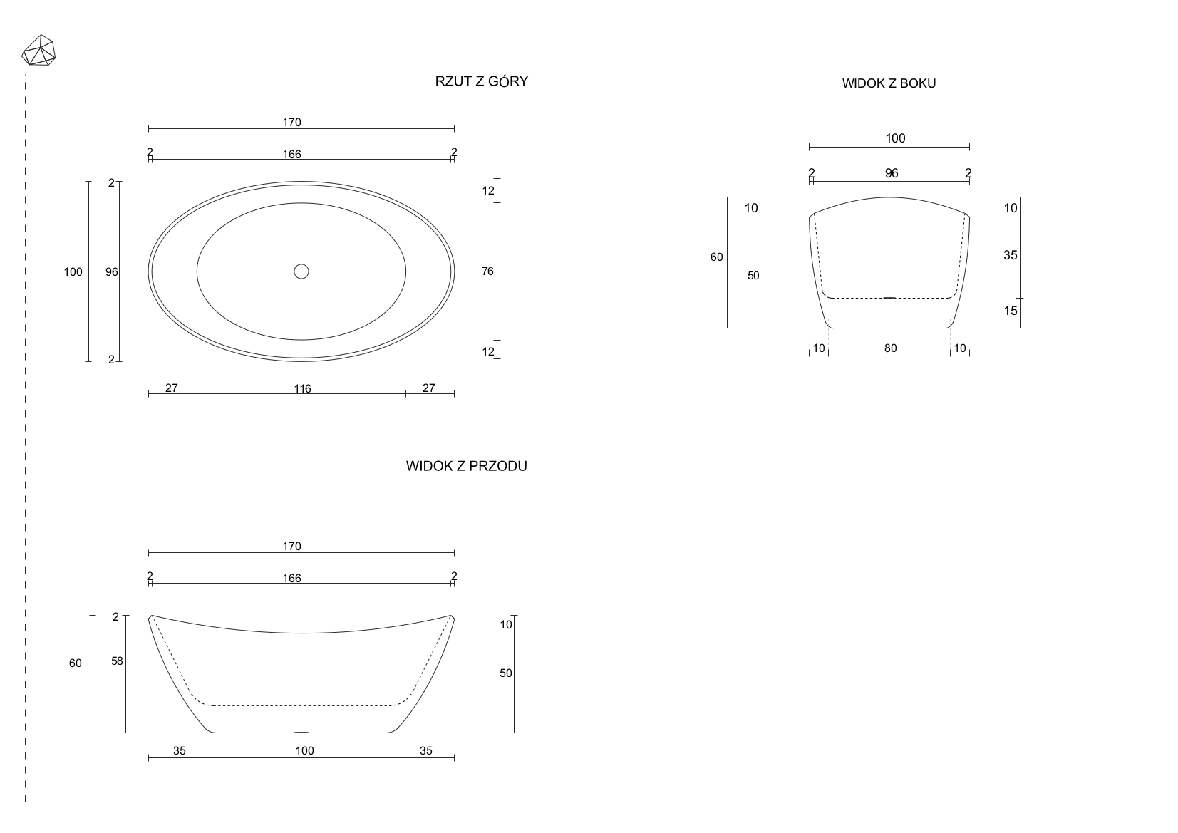 Wymiary:Długość: 170 cmSzerokość: 100 cmWysokość: 65 cmUWAGA: Ze względu na właściwości materiału, rzeczywiste wymiary produktu mogą odbiegać o ± 1,5% od wymiarów wskazanych w specyfikacji technicznej producenta.Pasujące produkty:Syfon CRISTWANZP