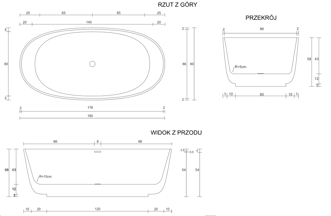 Wymiary:Długość: 180 cmSzerokość: 90 cmWysokość: 58 cmUWAGA: Ze względu na właściwości materiału, rzeczywiste wymiary produktu mogą odbiegać o ± 1,5% od wymiarów wskazanych w specyfikacji technicznej producenta.Pasujące produkty:Syfon CRISTWANZP