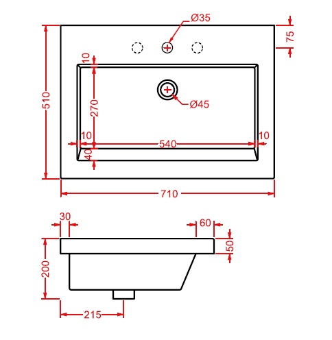 Artceram Gap Umywalka Wpuszczana w Blat 71x51 cm Biała L1816 / GPL00201;00