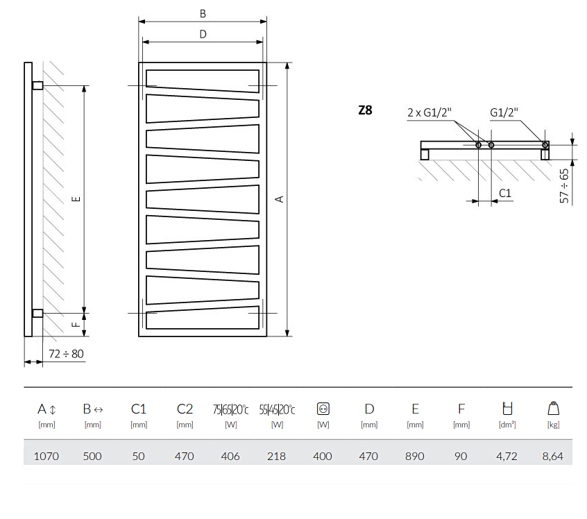 Terma ZigZag Grzejnik wodny ścienny 107x50 cm Metallic Black WGZIG107050KMBCZ8