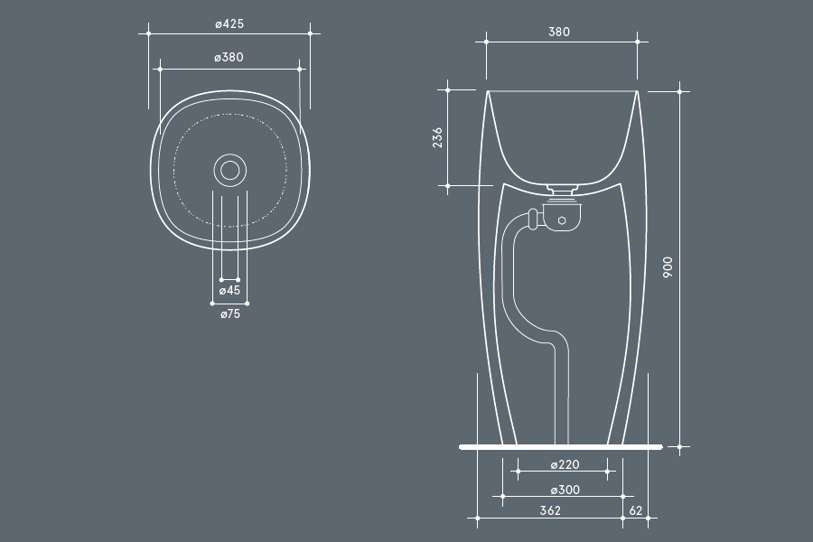 Valdama Seed Umywalka wolnostojąca 42,5x42,5xh90 cm z korkiem biała SEL0900A+PUL00A
