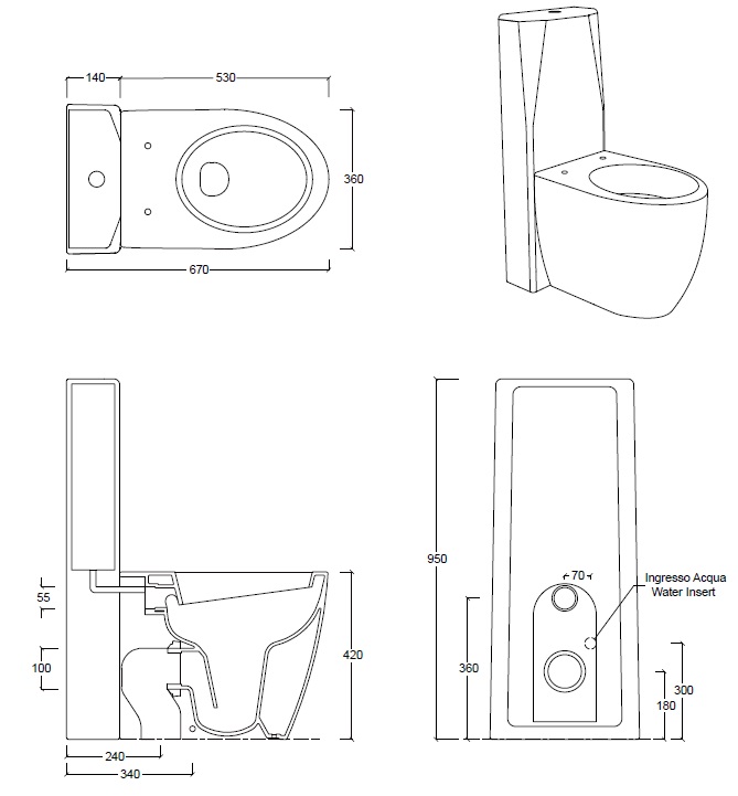 Esedra Spłuczka Podłogowa 14x41 cm sabbia SACMBL