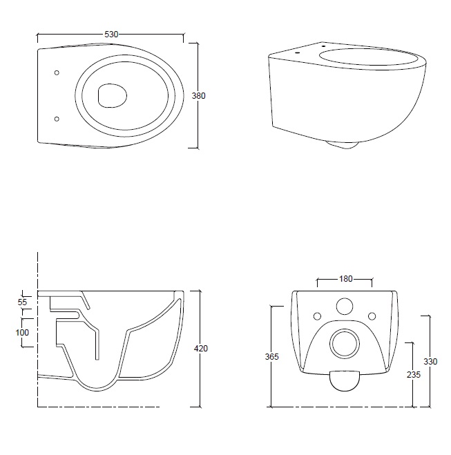 Esedra Bull WC Wiszący NO-RIM 53x36 cm grafite MBWCSBLR