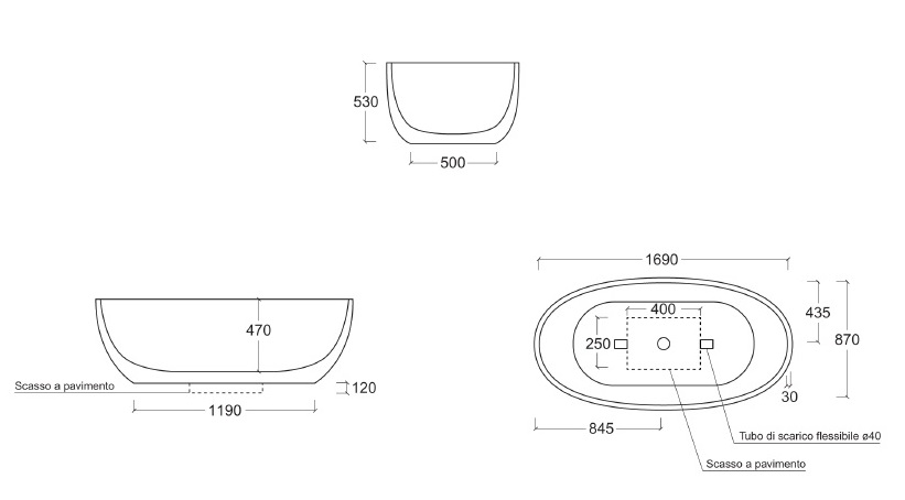 Esedra Bull Wanna Wolnostojąca 167x87 cm panna VBL