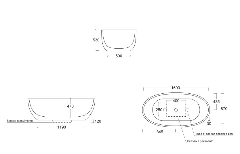 Esedra Bull Wanna Wolnstojąca 167x87 cm magnesio MGVBL