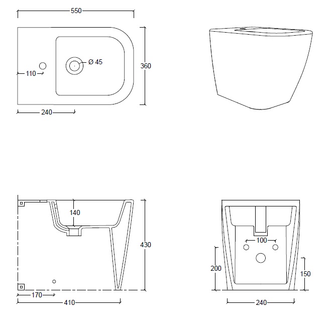 Esedra Quadra Bidet Stojący 36x55 cm biały BDQD