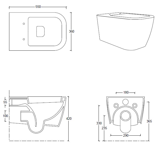 Esedra Quadra WC Wiszący 54x36 cm biały WCSQD