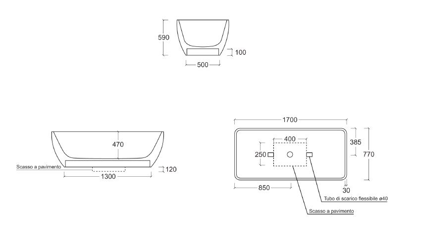 Esedra Quadra Wanna Wolnstojąca 170x77 cm panna VQD