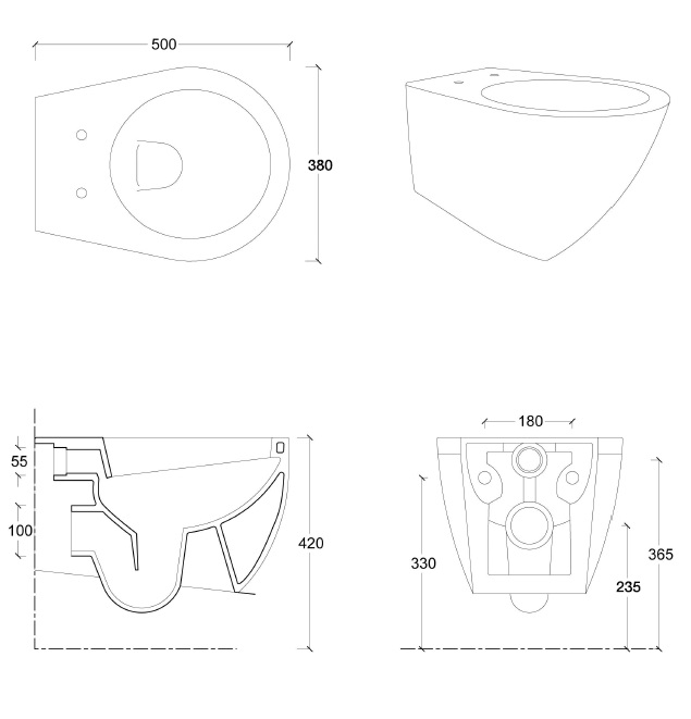 Esedra Bull500 WC Wiszący 38x50 cm panna MWWCSB500