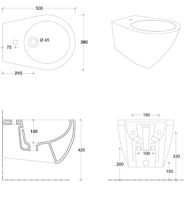 Esedra Bull500 Bidet Wiszący 38x50 cm biały BDSB500