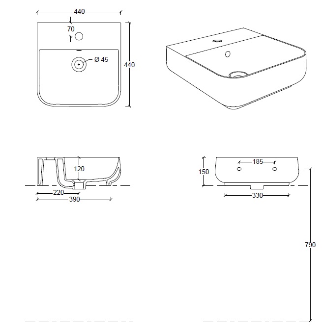 Esedra Qube 2 Umywalka Stawiana na Blat/Ścienna 44x44 cm panna MWLVQ2