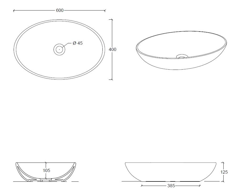 Esedra Flat 2 Umywalka Stawiana na Blat 60x40 cm caffe CFLVF2