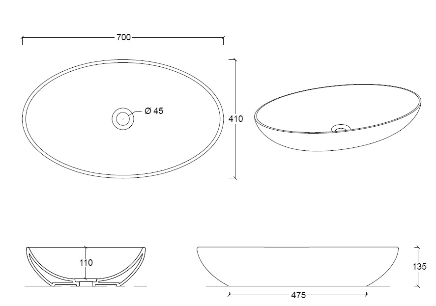 Esedra Flat 3 Umywalka Stawiana na Blat 70x41 cm ghiaccio GHLVF3