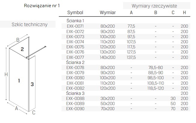 - EXK-0078, EXK-0079, EXK-0080, EXK-0081, EXK-0082 oraz EXK-0088, EXK-0089, EXK-0090 (rozwiązanie nr 1)