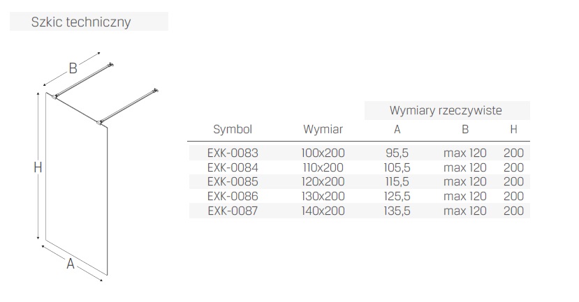 New Trendy New Modus Black Ścianka Prysznicowa Walk-In 120x200 cm czarna EXK-0085