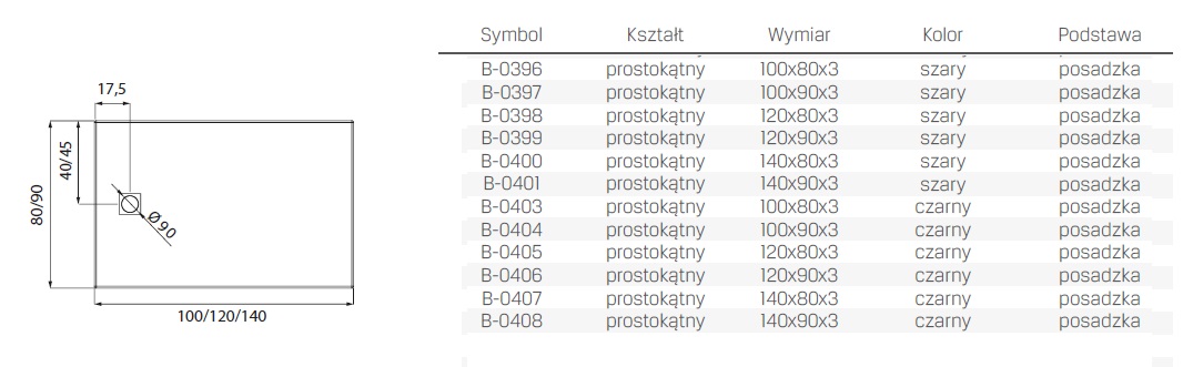 New Trendy Mori Brodzik prostokątny 120x80x3 cm czarny B-0405