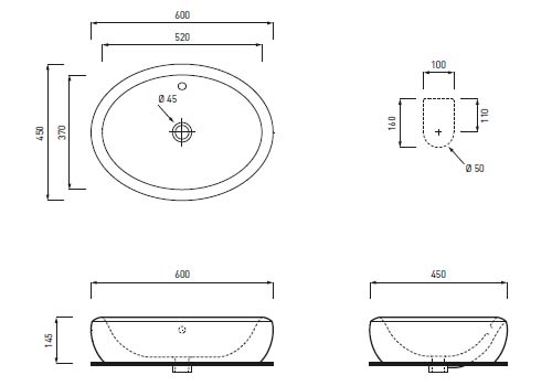 Cielo Fluid Umywalka owalna stawiana na blat 60x45cm Biały FLLA60