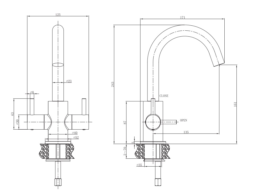 • Montaż: Jednootworowy