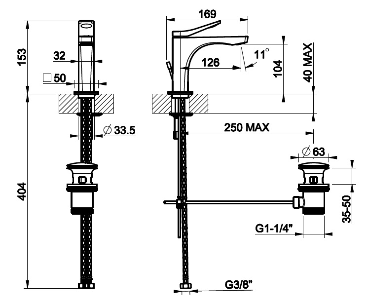 Gessi Rilievo Bateria Umywalkowa Jednootworowa chrom 59001.031 / 59001031