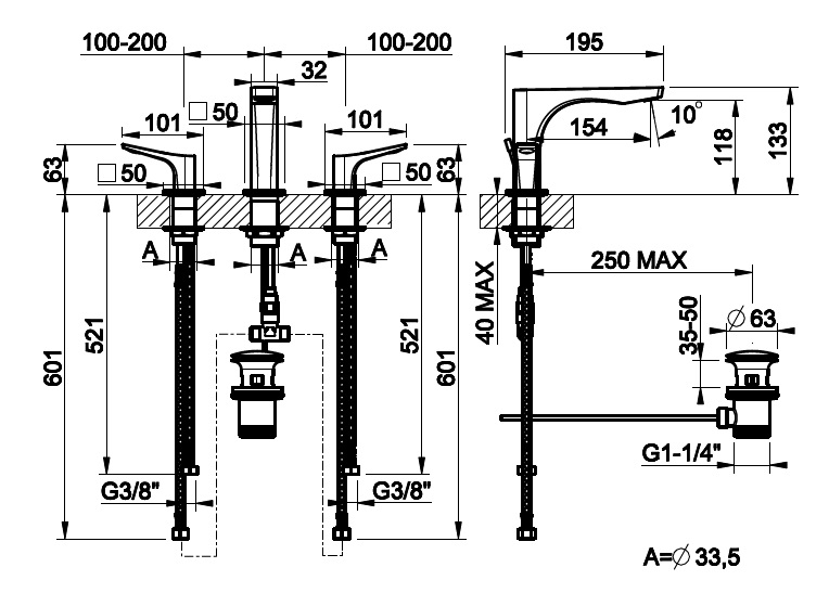 Gessi Rilievo Bateria Umywalkowa 3-otworowa chrom 59011.031 / 59011031