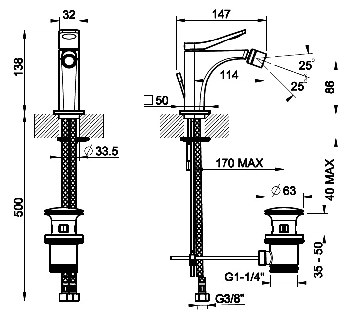 Gessi Rilievo Bateria Bidetowa Jednootworowa chrom 59007.031 / 59007031