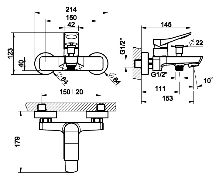 Gessi Rilievo Bateria Wannowa Naścienna chrom 59013.031 / 59013031