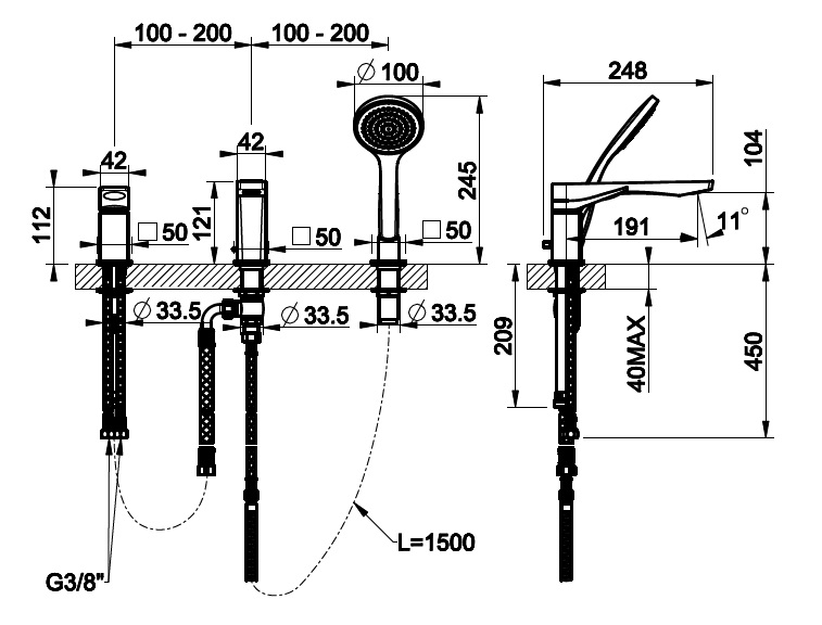 Gessi Rilievo Bateria Wannowa 3-otworowa Na Brzeg Wanny chrom 59037.031 / 59037031