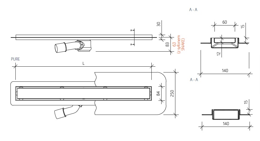 Wpusty WIPER PREMIUM są zaopatrzone w kołnierz izolacyjny, przydatny przy zabudowie w posadzce z warstwą izolacyjną. Opcjonalnie można zastosować mankiet izolacyjny oraz taśmę butylową, co w znacznym stopniu ułatwia montaż. Zwieńczenie to elegancka ramka i kratka ze stali nierdzewnej o szerokości 84 mm oraz praktycznie dowolnej długości.