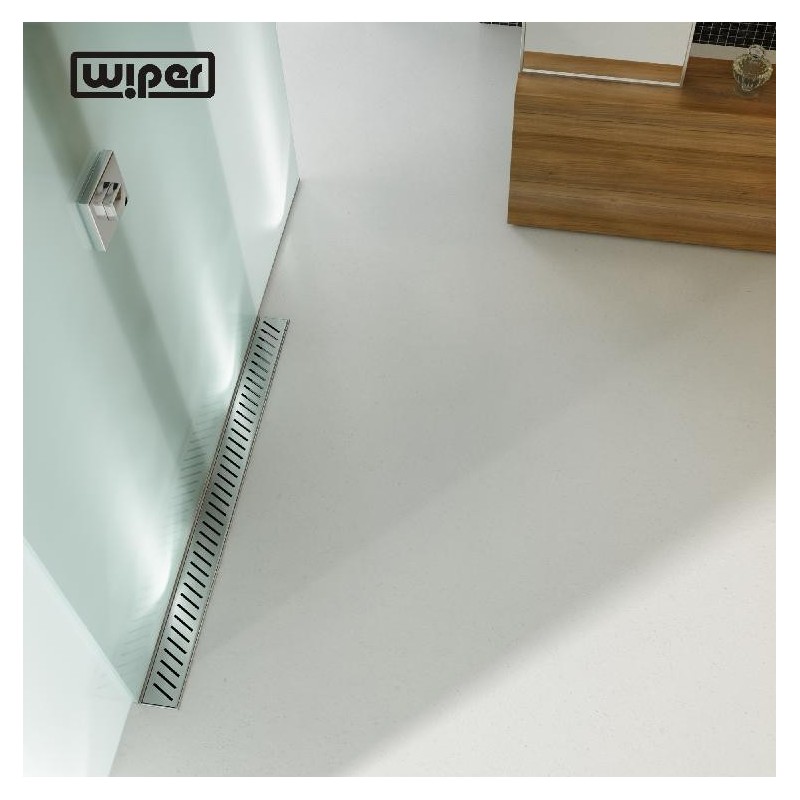 Wpusty liniowe WIPER przeznaczone są do stosowania w nowoczesnych łazienkach pozbawionych standardowego brodzika co pozwala na swobodny dobór kształtu kabiny. Zastosowanie wpustów liniowych pozwala także na rezygnacje z progu przy wejściu do kabiny oraz kopertowego spadku powierzchni w jej wnętrzu co znacząco wpływa na poprawę estetyki.