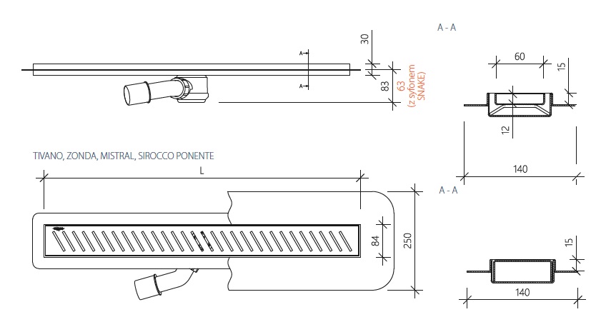 Wpusty WIPER PREMIUM są zaopatrzone w kołnierz izolacyjny, przydatny przy zabudowie w posadzce z warstwą izolacyjną. Opcjonalnie można zastosować mankiet izolacyjny oraz taśmę butylową, co w znacznym stopniu ułatwia montaż. Zwieńczenie to elegancka ramka i kratka ze stali nierdzewnej o szerokości 84 mm oraz praktycznie dowolnej długości.
