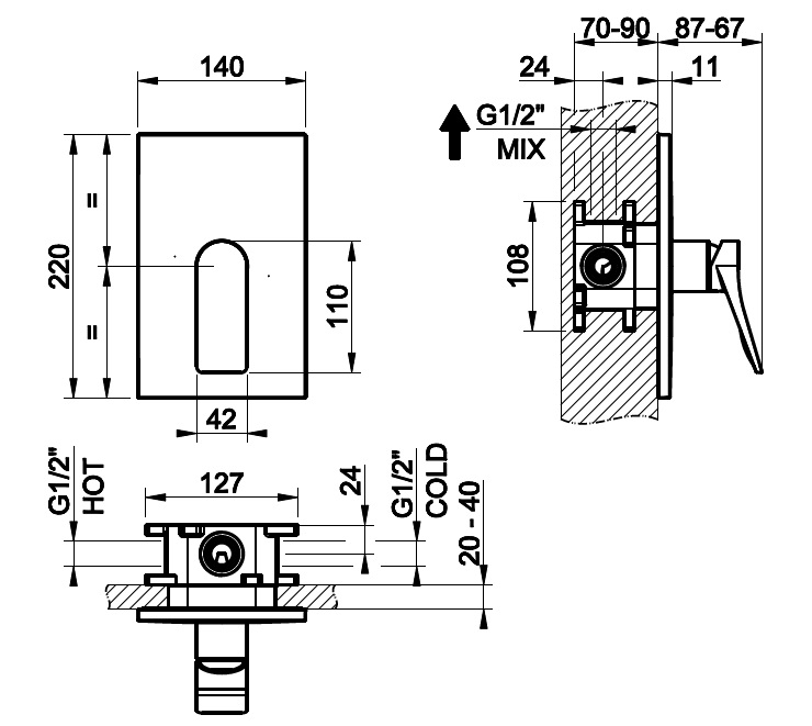 Gessi Rilievo Mieszacz podtynkowy, element zewnętrzny chrom 59061.031 / 59061031Kolor: Chrom