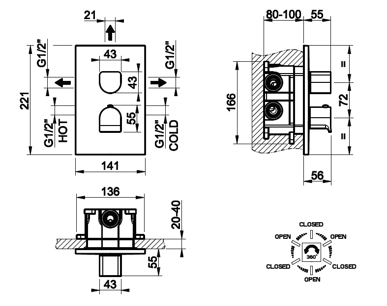 Gessi Rilievo Bateria Natryskowa Podtynkowa Termostatyczna chrom 59136.031/ 59136031