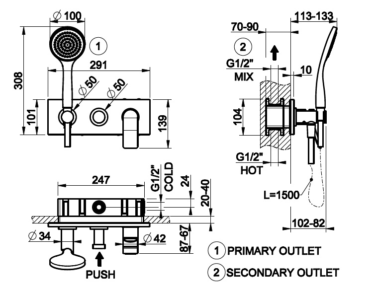 Rozstaw przyłączy: 180 mm