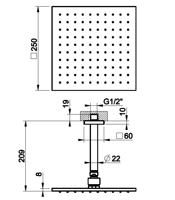 Gessi Rilievo Deszczownica z ramieniem sufitowym 25x25 cm chrom 59155.031 / 59155031Kolor: Chrom