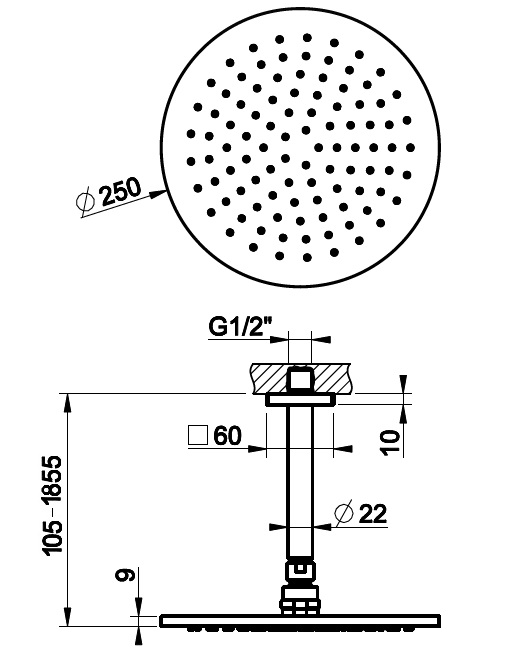 Gessi Rilievo Deszczownica z ramieniem sufitowym 25 cm chrom 59150.031 / 59150031Kolor: Chrom