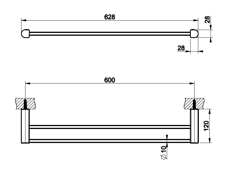 Gessi Rilievo Reling 60 cm Podwójny ścienny chrom 59405.031 / 59405031Kolor uchwytu: Chrom