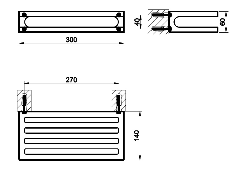 Wymiary: Szerokość: 300 mm Wysokość: 60 mm Długość: 140 mm