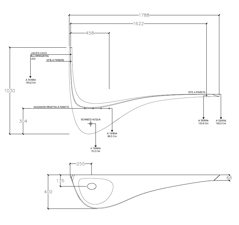 Falper Wing Umywalka ścienna 179x40xh103 cm biały mat D5Q179