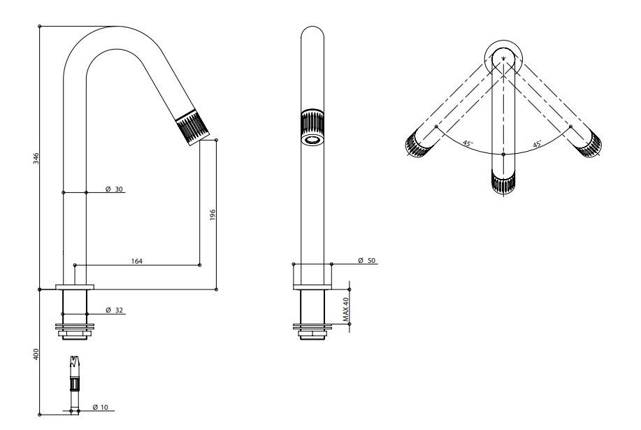 Bongio Time2020 Bateria umywalkowa wysoka jednootworowa brushed stainless steel 70532AS00