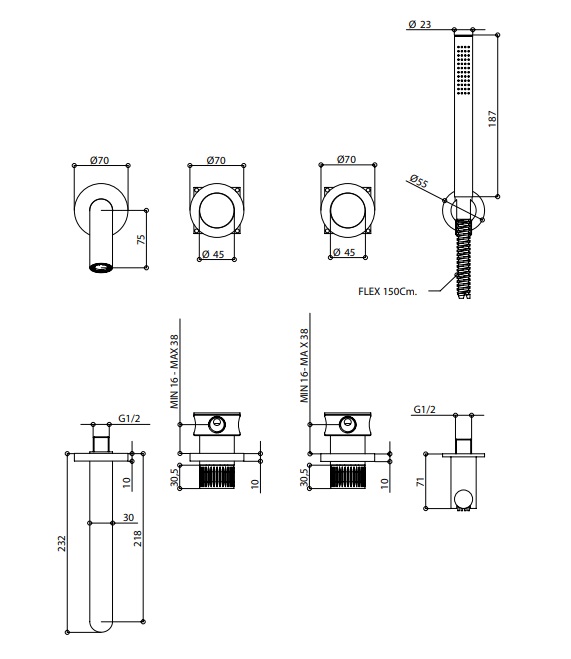 Istnieje możliwość zamówienia w kolorze czarny mat.Informacje dostępne u obsługi sklepu.Wymiary: - Średnica rozety: Ø70 mm