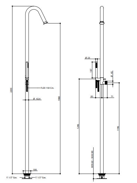 - Średnica wylewki: Ø42,4 mm