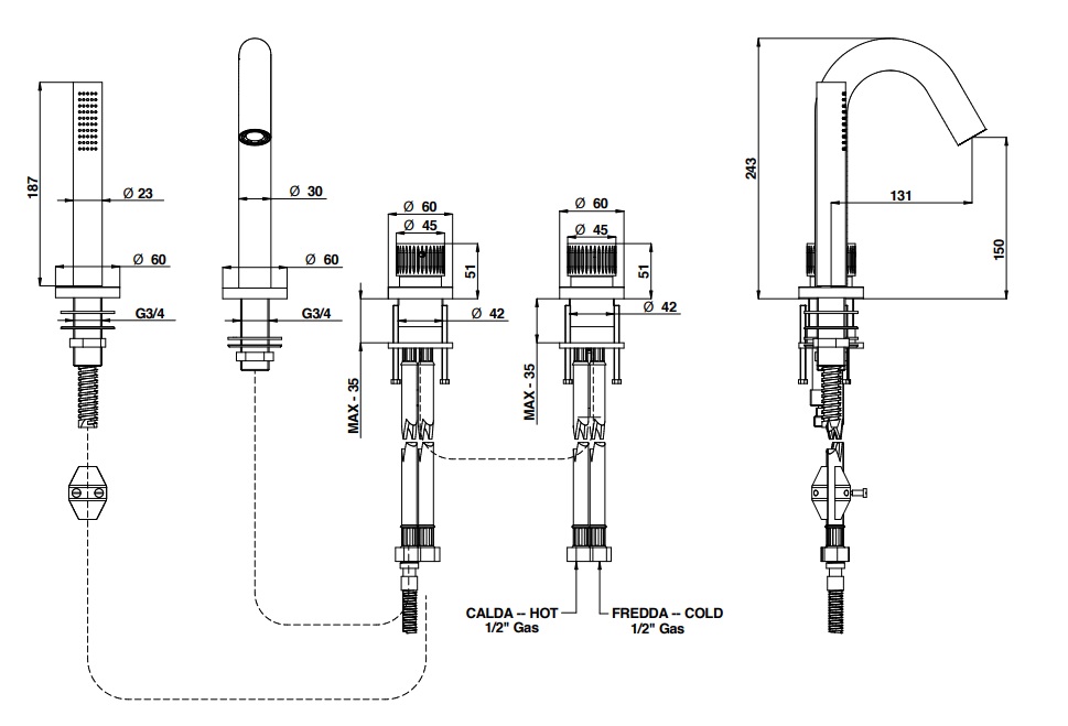 Bongio Time2020 Bateria wannowa na brzeg wanny brushed stainless steel 71531AS0D