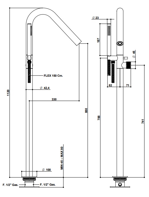 Bongio Time2020 Bateria wannowa wolnostojąca brushed stainless steel 71534AS0D