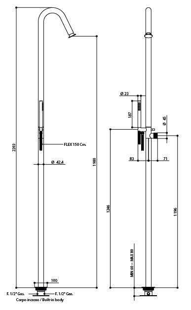 Bongio Time2020 Kolumna natryskowa wolnostojąca brushed stainless steel 71131AS0D