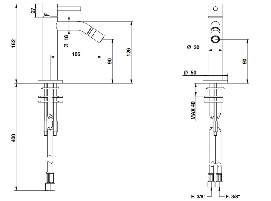 Bongio Time2020 Basic Bateria bidetowa jednootworowa brushed stainless steel 73522AS00