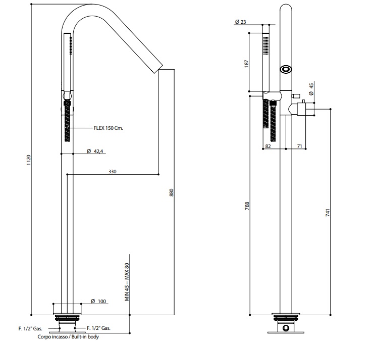 Bongio Time2020 Basic Bateria wannowa wolnostojąca brushed stainless steel 73534AS0D